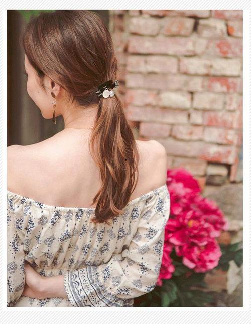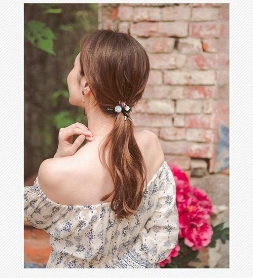 低马尾扎发:这款发型简单易学,适合日常佩戴。先将头发扎成一个低马尾,然后用发圈固定。接下来,将马尾分成两半,分别向内卷曲,最后用发夹固定。这款发型既清爽又时尚,让你在炎炎夏日也能保持清爽。